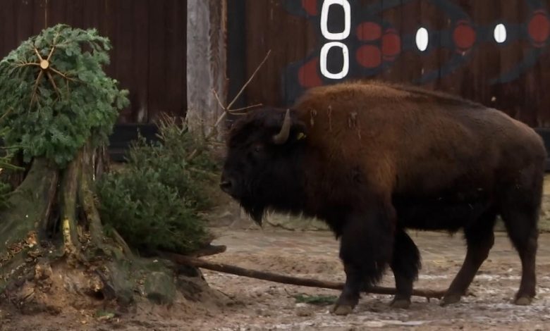 أشجار عيد الميلاد ضمن وجبات خاصة لحيوانات إحدى حدائق برلين ( فيديو )