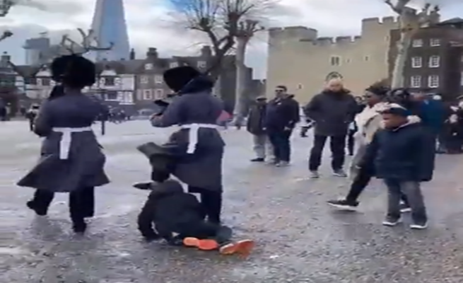 أثار مقطع مصور للحرس الملكي البريطاني، جدلًا بعد أن ظهر فيه طفل يقع على الأرض أمام عنصرين من الحرس، إلا أنهما استمرا بالمشي من دون إعارة أي انتباه للطفل الموجود على الأرض.