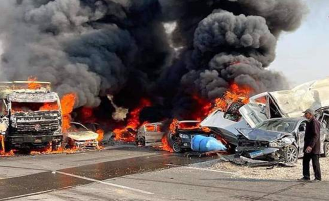 حادث مروع في مصر .. اشتعال النيران في عدة سيارات بطريق رئيسي