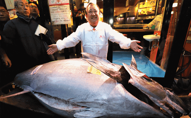 والسمكة التي بيعت تم اصطيادها من منطقة أوموري شمال اليابان المعروف بنوعية أسماك التونة العالية فيها.