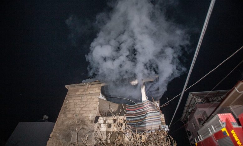 اندلع حريق بمنزل تعيش فيه عائلة سورية، في حي 15 تشرين، بولاية هاتاي، جنوبي تركيا.