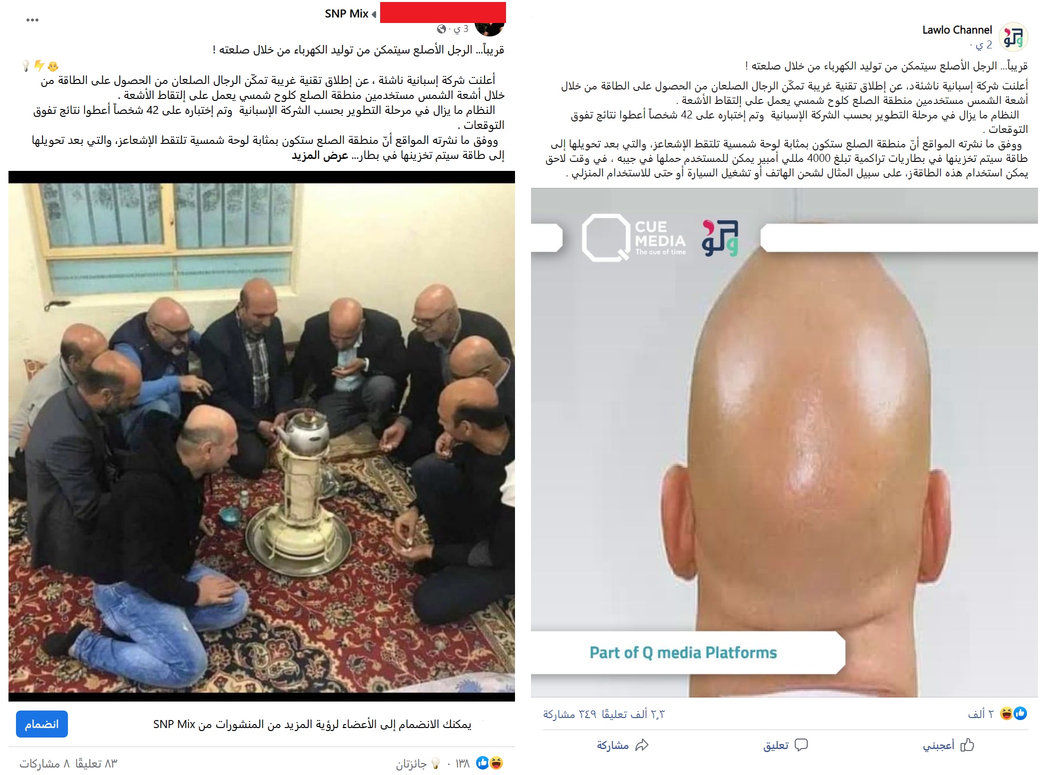 انتشر على نحو واسع خلال الأيام القليلة الماضية، عبر مواقع التواصل الاجتماعي، “خبر” مؤلف يدعي أن شركة ابتكرت طريقة لتوليد الكهرباء من رؤوس “الرجال الصلعان”.