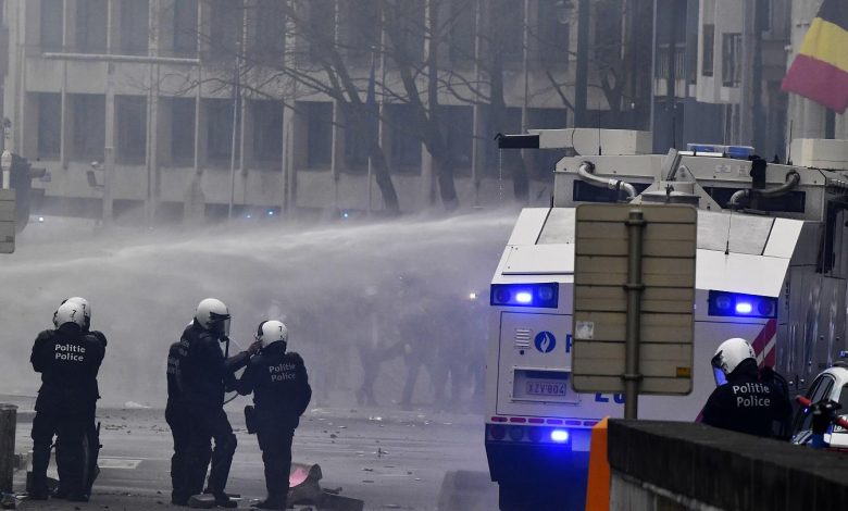 الشرطة البلجيكية تستخدم الغاز المسيل للدموع و خراطيم المياه لتفريق محتجين على قيود كورونا