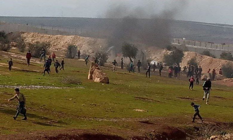 وذكر المرصد أن الاستهداف تم في منطقة أطمة شمالي إدلب قرب الحدود مع تركيا، ما أدى لإصابة سيدة وطفل بجراح.
