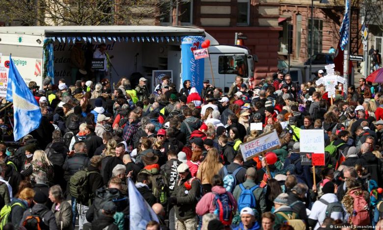 نزل الآلاف من المواطنين إلى الشوارع في العديد من المدن الألمانية يوم السبت احتجاجا على الإجراءات المتبعة لمواجهة جائحة كورونا.