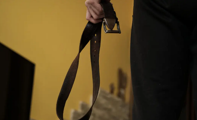 وأظهر مقطع مصور الأب وهو يضرب ابنه بحزام بعدما علقه من السقف بمروحة لتعذيبه، كما أجبر ابنه الأصغر على تصوير الواقعة.
