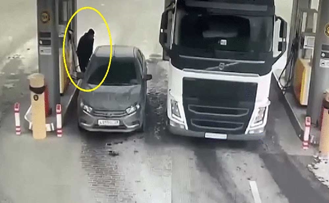 ووفق ما اوردت صحيفة “البيان” الإماراتية، أظهر الفيديو الذي التقطته كاميرا المراقبة في إحدى محطات الوقود، سائق سيارة (47 عامًا)، وهو يزوّد سيارته بالوقود، وعندما تحركت شاحنة ضخمة، بدا الرجل خائفًا على سيارته، لكنه اختار أغرب وأقسى رد فعل لحمايتها من الحادث.