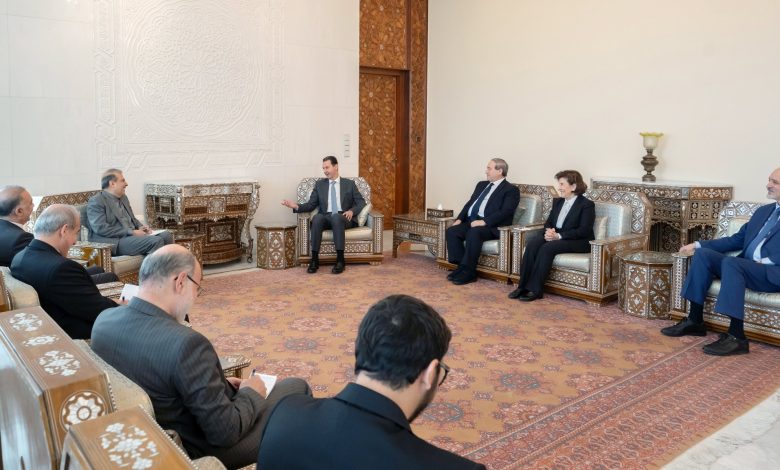 بشار الأسد و فيصل المقداد و بثينة شعبان و بشار الجعفري يستقبلون ” كبير مساعدي وزير الخارجية الإيراني “
