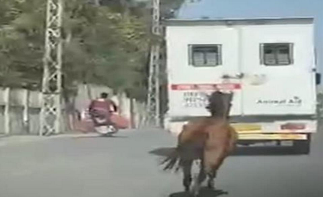 ” حصان ” يلاحق سيارة إسعاف بعد أن حملت شقيقته ( فيديو )