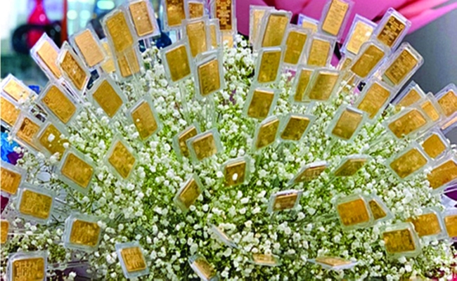 بمناسبة الاحتفال بيوم المرأة العالمي، قرر رجل من مدينة “دا نانج” الساحلية الواقعة في وسط فيتنام، أن يهدي امرأة من أقاربه هدية مميزة عبارة عن “باقة” من الورد وقطع ذهب.