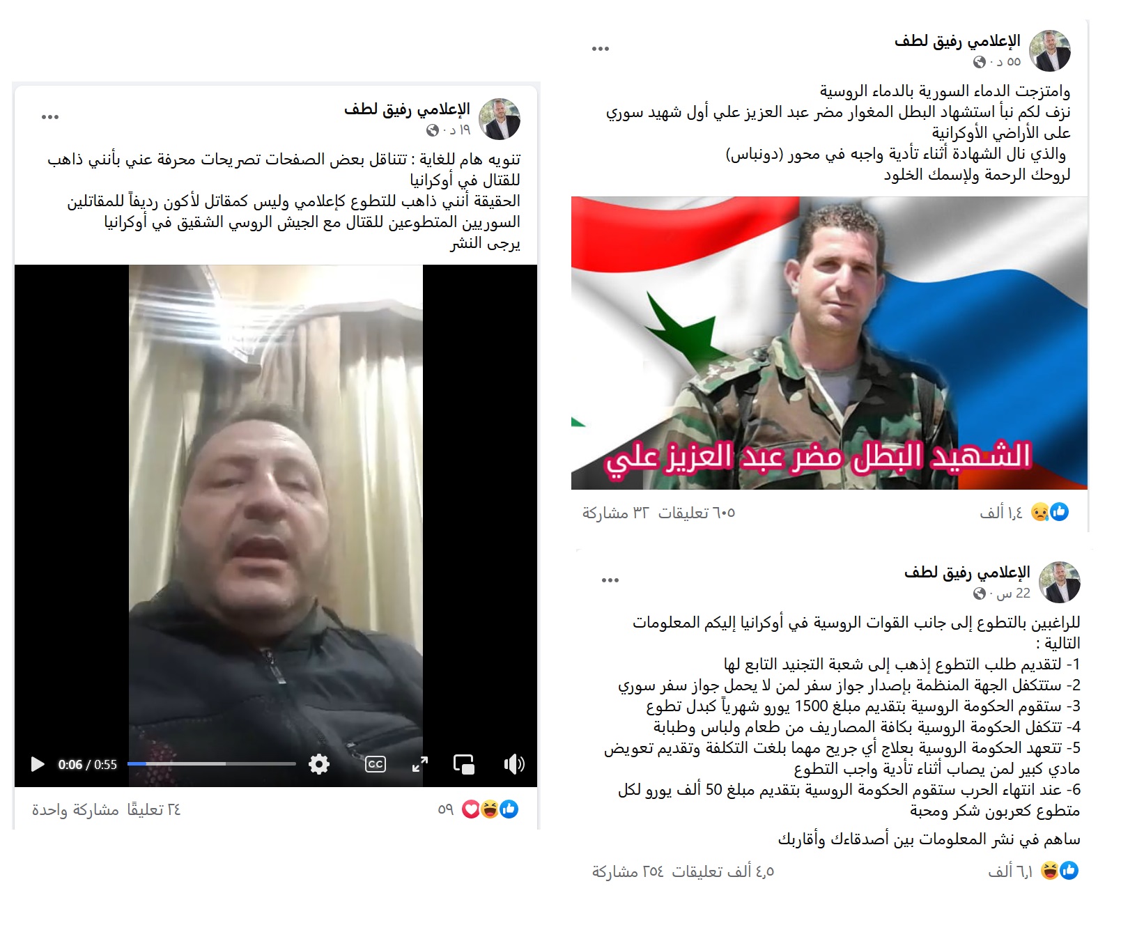 ونشرت الصفحة منشوراً حظي هو الآخر بتداول كبير عبر مواقع التواصل الاجتماعي، احتوى على معلومات مكذوبة متعلقة بعمليات التجنيد والتطوع، أبرزها أن روسيا ستقدم “50 ألف يورو لكل متطوع كعربون شكر ومحبة”.