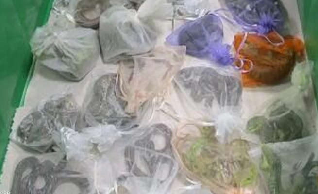 وبحسب قناة “سكاي نيوز”، كان المهرب قد وضع الزواحف المؤلفة من تسع أفاعٍ و43 سحلية ذات قرون في أكياس بلاستيكية صغيرة وخبأها “تحت سترته وفي جيوب بنطاله وبين فخذيه”، بحسب ما أوضحت الجمارك الأميركية في بيان.