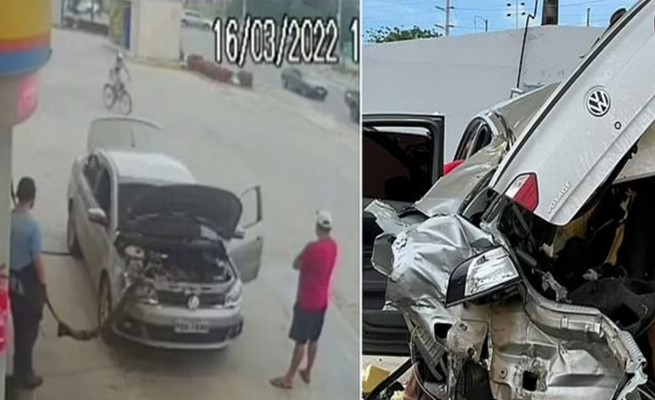 وأظهرت اللقطات رجلين يقفان بجانب السيارة في محطة وقود في مدينة فورتاليزا الساحلية في البرازيل، عندما انفجرت السيارة من دون سابق إنذار.