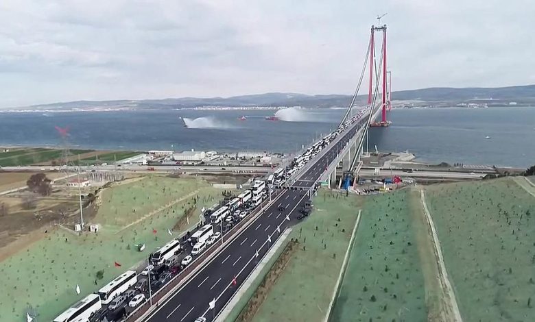 افتتحت تركيا جسر “جناق قلعة 1915” على مضيق الدردنيل الذي يصل بحر مرمرة ببحر إيجه، وهو أطول جسر معلق في العالم، ويربط بين قارتي آسيا وأوروبا.
