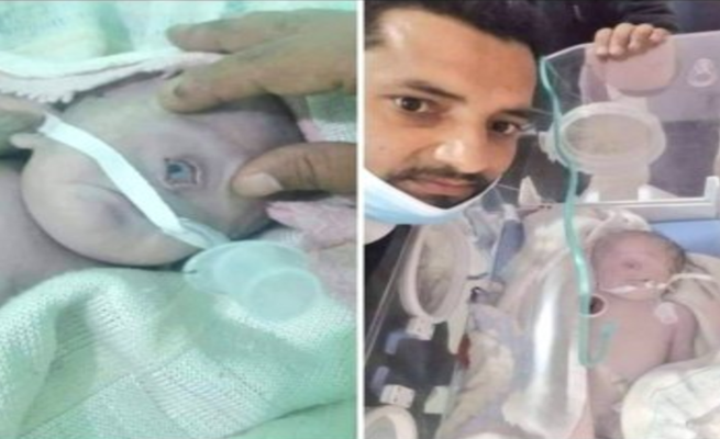 في حالة نادرة .. ولادة طفل يمني بعين واحدة