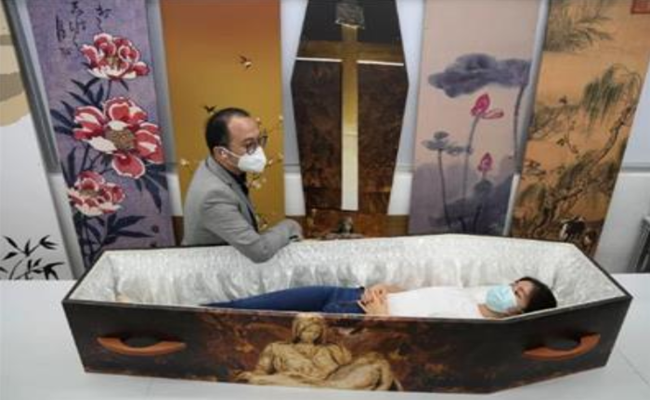 ووفقاً لقناة “سكاي نيوز”، وفرت شركة “لايف آرت آسيا” نعوش من الورق المقوى المصنوع من ألياف معاد تدويرها، ويمكن نقش تصميمات عليها من الخارج.