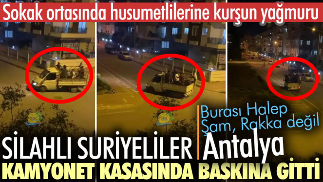 أظهرت مقاطع مصورة بثها أتراك على مواقع التواصل الاجتماعي، مجموعة من الشباب السوريين، يستقلون شاحنة صغيرة، يطلقون أعيرة نارية من بنادقهم الحربية على مجموعة أخرى تشاجروا معها، بولاية أنطاليا التركية.