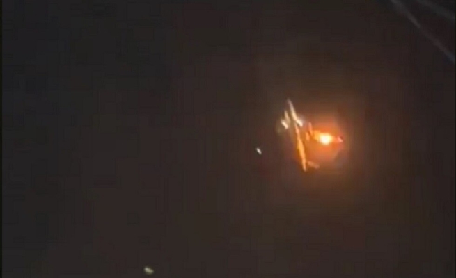 طائرة تتطاير من أحد محركاتها شرارات نار في عتمة الليل ! ( فيديو )