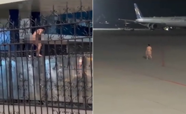 وثق مقطع فيديو انتشر على مواقع التواصل الاجتماعي، رجلا عاريا تسلل إلى داخل مطار مدينة المآتا بكازاخستان، وبدأ يركض في مدرجات المطار.
