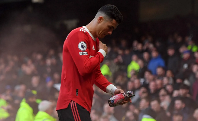 وعندما كان رونالدو يهم بالخروج، قام بضرب هاتف مشجع إيفرتون كان يقوم بتصويره، ليرتطم الهاتف بالأرض ويتهشم.