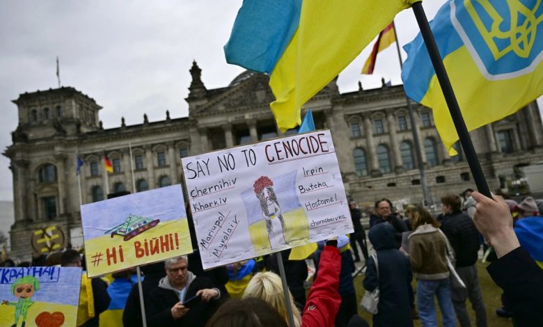 وصدمت بعض الرسائل السياسية التي تم التلويح بها خلال الموكب الطبقة السياسية الألمانية في اليوم نفسه الذي تم فيه الكشف عن فظائع بوتشا. واعتقلت امرأة لعرضها الحرف “زد” رمز دعم الجيش للروسي والممنوع الآن في برلين.