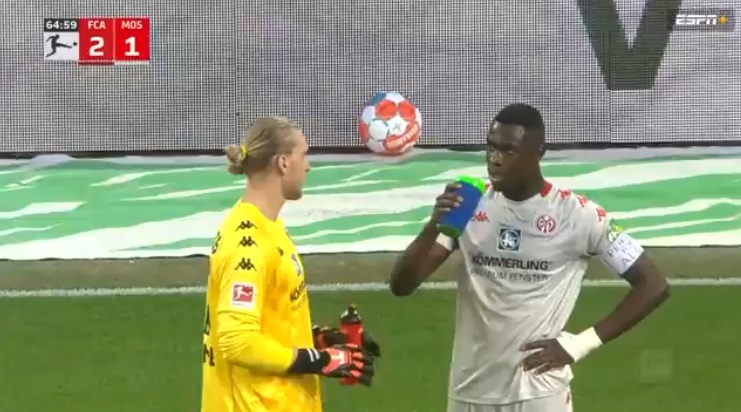 Play was stopped during Augsburg vs. Mainz 05 so Moussa Niakhaté could have a moment to break his Ramadan fast just after sunset 👏 pic.twitter.com/TwfbcpBfn7