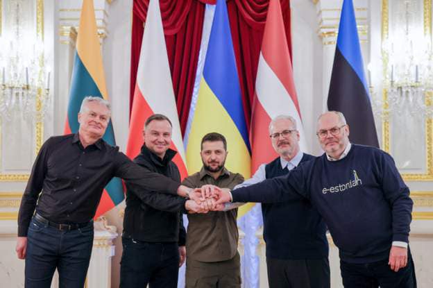 أكد الرئيس الأوكراني فولوديمير زيلينسكي أن بولندا ولاتفيا وليتوانيا وإستونيا كانت أولى الدول المدافعة عن أوكرانيا مع بدء الهجوم الروسي عليها.
