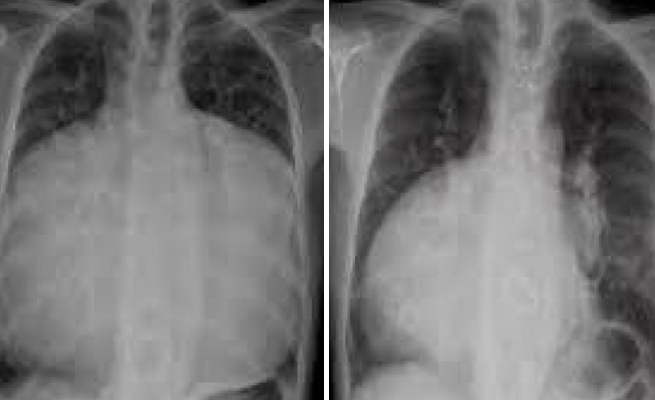 عندما أجرى الأطباء صورة أشعة سينية على الصدر، وجدوا ما هو بالأساس عبارة عن تضخم في القلب.
