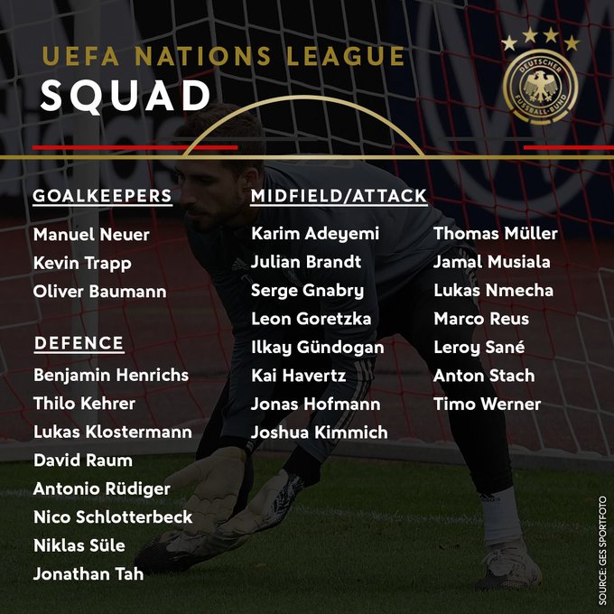 أعلن هانزي فليك، المدير الفني للمنتخب الألماني، قائمة المانشافت، لمباريات دوري الأمم الأوروبية.