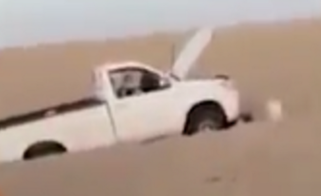 وتحدث موثق الفيديو عن تفاصيل محزنة عن مأساتهم قبل وفاته، موضحاً بأن سيارتهم علقت بالرمال، بعد أن تاهوا في الصحراء، ولم يستطيعوا إخراجها لأكثر من 3 أيام.