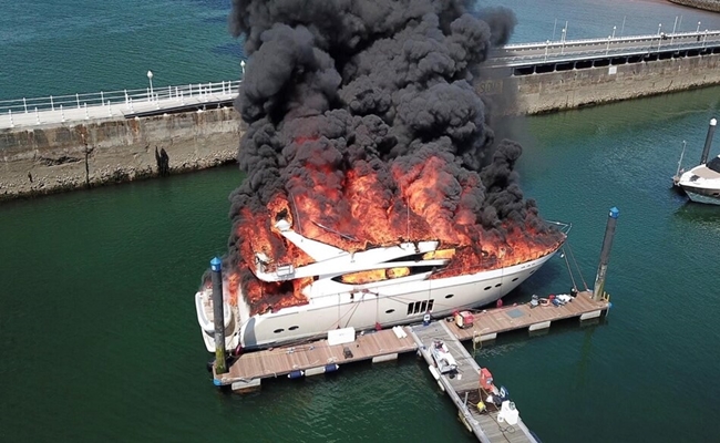 حريق يلتهم يختاً فاخراً في إنكلترا ( فيديو )