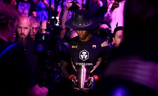 ودخل إسرائيل أديسانيا ملعب “T-Mobile Arena” في مدينة لاس فيغاس بولاية نيفادا الأمريكية، وهو يحمل جرة مكتوب عليها اسم خصمه، الأمر الذي يرمز إلى وضع رماد جثة الميت للدفن.