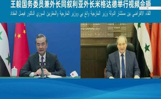 أعرب وزير الخارجية والمغتربين في حكومة النظام فيصل المقداد خلال اتصال مرئي مع نظيره الصيني وانغ يي “حرص سوريا على تعزيز التنسيق والتعاون مع الصين في كافة المجالات وخاصة في المجال الاقتصادي وتشجيع الشركات الصينية على الاستفادة من الفرص الاستثمارية المتاحة في سورية والمساهمة في إعادة الإعمار”.