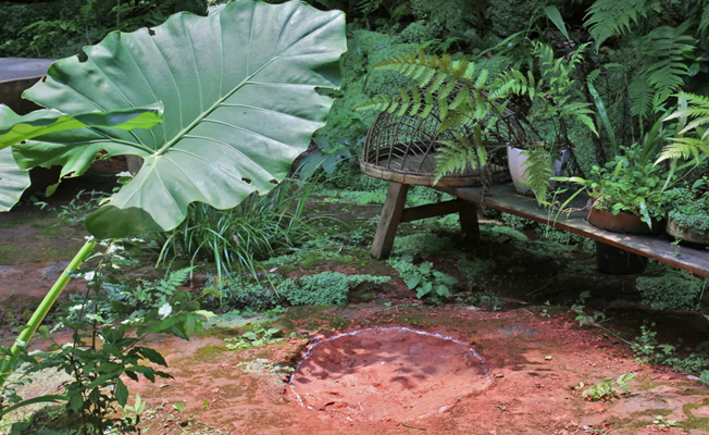 ولفت شينغ إلى أن مالك المطعم أحب المظهر الطبيعي للحجر غير المستوي، لذلك تركه دون مساس بدلاً من تسويته بالأسمنت.