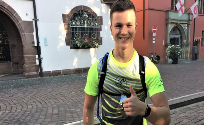 ويعتزم الطالب دينيس هولوب، 16 عاما، قطع مسافة طولها 1120 كيلومترا خلال 16 يوما- بمعدل حوالي 70 كيلومترا في اليوم – والوصول إلى خط النهاية في هامبورج يوم 14 أغسطس المقبل.