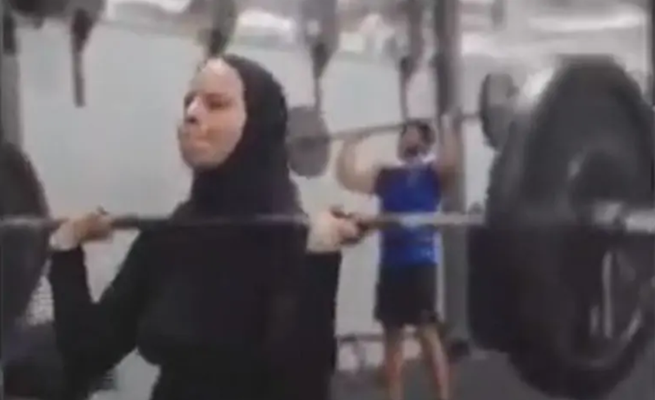 وأطلّت مرتدية ملابس رياضية، حاملة الأثقال وكأنها لا تحمل شيئاً على الإطلاق في جوفها، وسط دهشة لا توصف من المتابعين.
