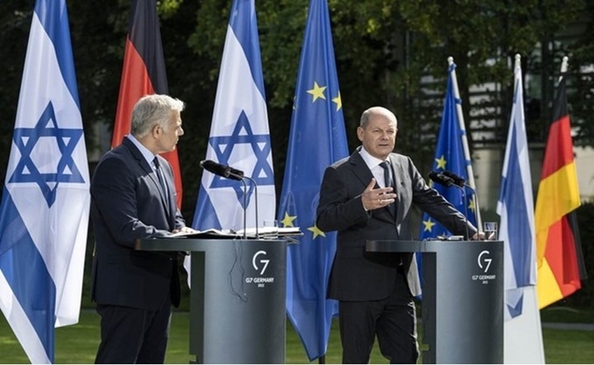 وقال لابيد للصحفيين وإلى جواره المستشار الألماني أولاف شولتس “إسرائيل… ستلعب دورا في بناء قوة الدفاع الألمانية الجديدة، في مجال الدفاع الجوي بالأساس”.