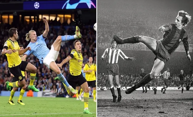 كشف بيب غوارديولا مدرب مانشستر سيتي إن هدف إرلينغ هالاند المذهل في الفوز 2-1 على بروسيا دورتموند بدوري أبطال أوروبا لكرة القدم يذكره الأسطورة الهولندي الراحل يوهان كرويف.