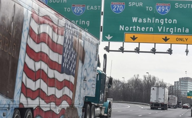 سقطت شاحنة كبيرة بـ 18 عجلة من جسر إلى شارع سفلي في تكساس الأمريكية، ما تسبب بوفاة السائق.