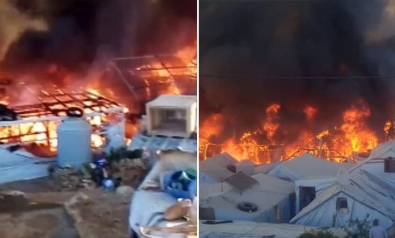 حريق ضخم في مخيم للاجئين السوريين في لبنان