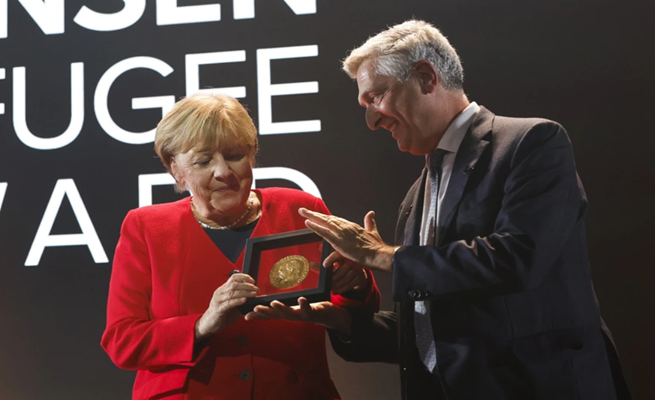 تلقت المستشارة الألمانية السابقة أنجيلا ميركل أرفع جائزة تمنحها المفوضية السامية لشؤون اللاجئين في مدينة جنيف غرب سويسرا.