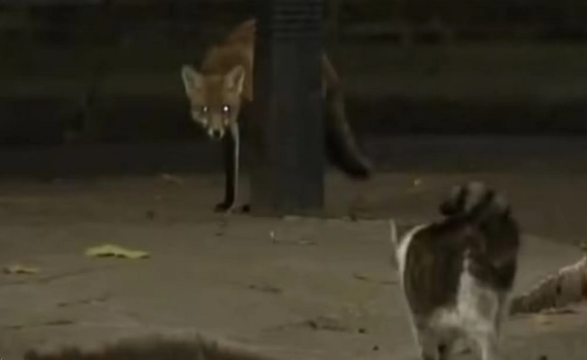 مقر حكومة بريطانيا يشهد مواجهة بين القط لاري و ثعلب ( فيديو )