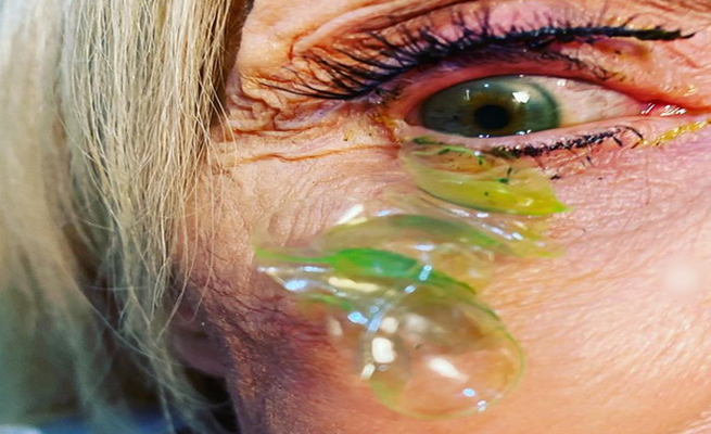 وعند فحص عينيها، اكتشف أطباء العيون كتلة كبيرة على إحدى عينيها، والتي تبين أنها 27 عدسة لاصقة كانت على ما يبدو في العين لفترة طويلة لدرجة أنها أصبحت عالقة معًا.