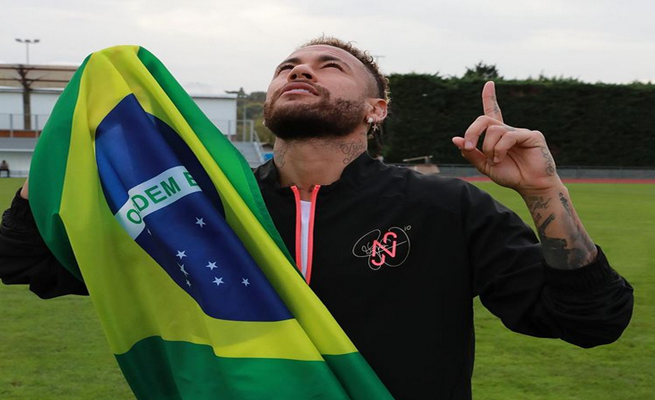 ونشر نيمار عبر حسابه على “إنستغرام” صورتين له مع علم بلاده تحت تعليق: “عسى أن تتحقق رغبتك يا رب”.