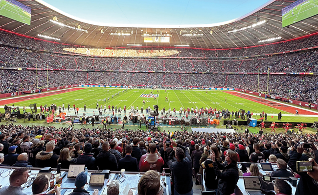 وشُوهد كلٌّ من: توماس مولر، وجمال موسيالا، وسيرجي جنابري، وليروي ساني، في ميونيخ خلال أوَّل مباراة بدوري كرة القدم الأمريكية والتي أُقيمت في ألمانيا، بين فريقَي تامبا باي وسياتل سي هوكس.
