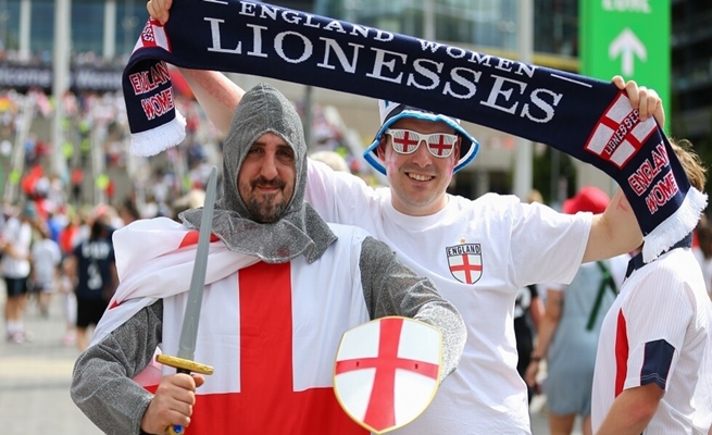وحضر بعض مشجعي منتخب إنكلترا، فعاليات المونديال، وهم يرتدون زي القديس جورج، وعليه خوذات وصلبان وسيوف بلاستيكية.