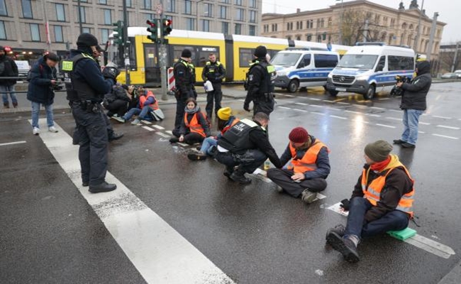 وقالت الشرطة إن خمسة أشخاص ألصقوا أنفسهم على الطريق أمام محطة القطار الرئيسية في برلين. ووقع احتجاجان آخران مماثلان في مواقع أخرى في وسط المدينة.