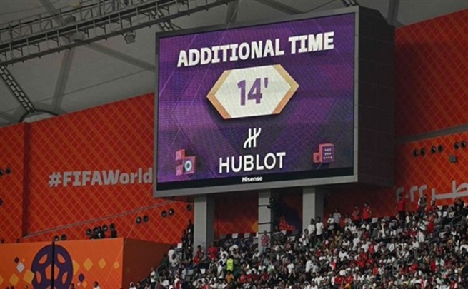 وتم توجيه تعليمات إلى الحكام لإيقاف الساعة للاحتفالات وإضاعة الوقت والتأخيرات الأخرى في مونديال قطر، مما أدى إلى فترات طويلة من الوقت بدل الضائع.