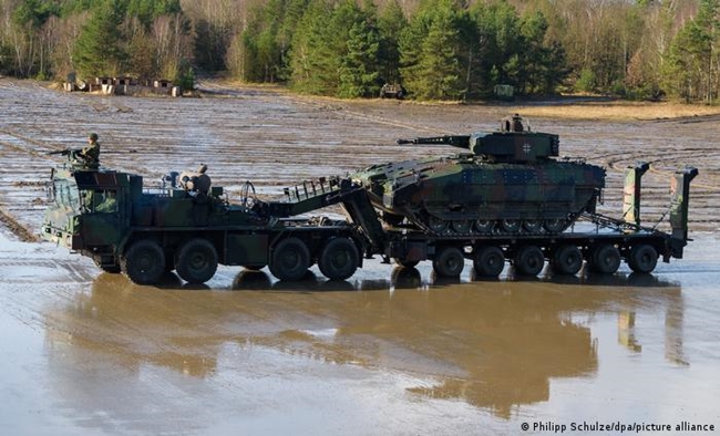 يذكر أن ألمانيا لديها أسطول مكون من 350 مدرعة من طراز بوما وضمنت تمويلًا لـ 229 وحدة إضافية بعد الغزو الروسي لأوكرانيا. (DPA)