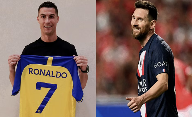 وبحسب شبكة “إرم نيوز”، سيلتقي ميسي ورونالدو وجهًا لوجه الشهر الحالي في مباراة ودية بين النصر السعودي في مواجهة باريس سان جيرمان الفرنسي في ختام موسم الرياض.